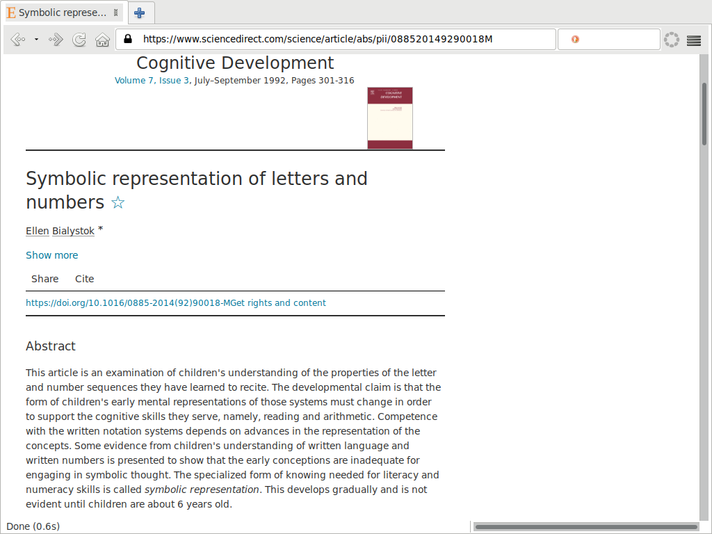 no word used consistently to identify any quantity, not even one. The specialized form of knowing needed for literacy and numeracy skills is called symbolic representation. This develops gradually and is not evident until children are about 6 years old. The most efficient system developed so far for representing numbers uses digits and number bases. In a base, a number is represented as a string of symbols called digits, like 123. The base, which is named according to the number of distinct symbols (digits) used, can also be specified: 12310. Base 2, which uses 2 symbols, 0 and 1, is currently used in most computers, but ENIAC12310 = 1·102+2·101+3·100 = = 1·26+1·25+1·24+1·23+0·22+1·21+1·20 = 11110112 Elements of formal logic Formal logic is the science of deductively valid arguments