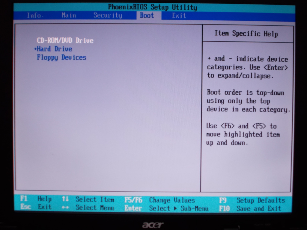 DVD DVD with installation image DVD BIOS setting, acer laptop from 2005